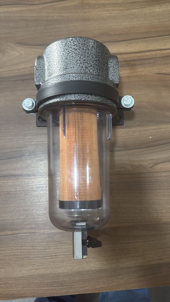 Filtro de linha para Diesel/Biodiesel, com cúpula de alta resistência e maior transparência, cabeçote de alumínio com pintura eletrostática, rosca sem garra para evitar quebra da cúpula, acompanha chave de alumínio e abraçadeiras de fixação.